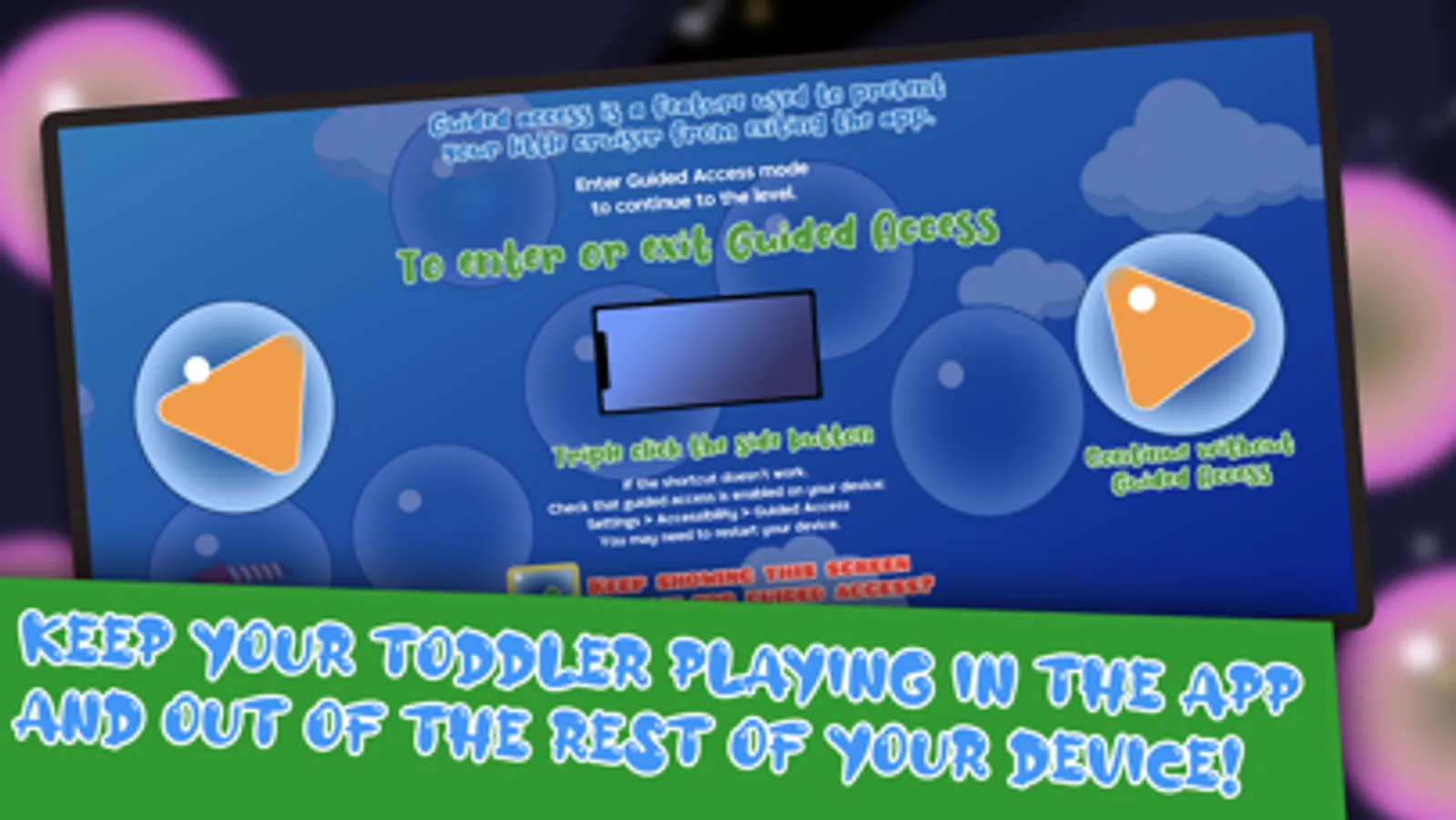 Guided Access - The game integrates with your device's Guided Access functionality. This will make sure that your little cruiser stays in the game and can't get into the depths of your phone.