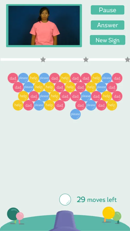 PopSign is a smartphone game that makes learning American Sign Language fun, interactive, and accessible for anyone who wants to learn. Players match videos of ASL signs with bubbles containing written English words to pop them.