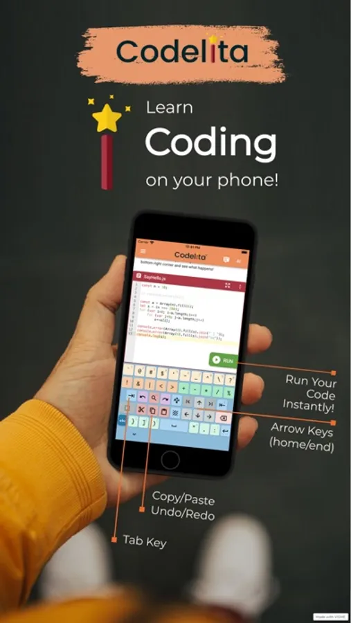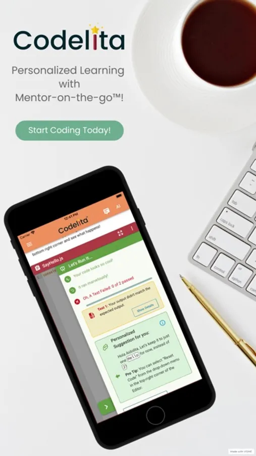 Codelita uses proprietary and patented technologies to provide personalized education. Codelita app offers an embedded editor and a patented custom Virtual Keyboard for Coding (which we call “Codeeboard!”) to help you code on your phone or tablet.