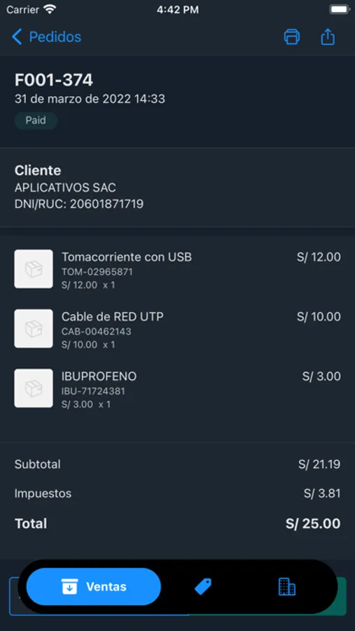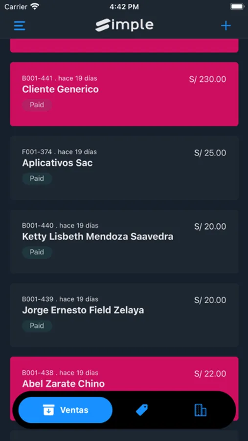 Gestiona las ventas de tu negocio, emite comprobantes de pago fácilmente. Administra turnos, gestiona tu restaurante y otros rubros de negocio con el módulo de punto de venta (POS). Conecta tu RUC con SUNAT y envía los comprobantes electrónicos por Whatsapp, email, etc. Simplefact se conecta a impresoras térmicas Bluetooth o impresoras en Red.