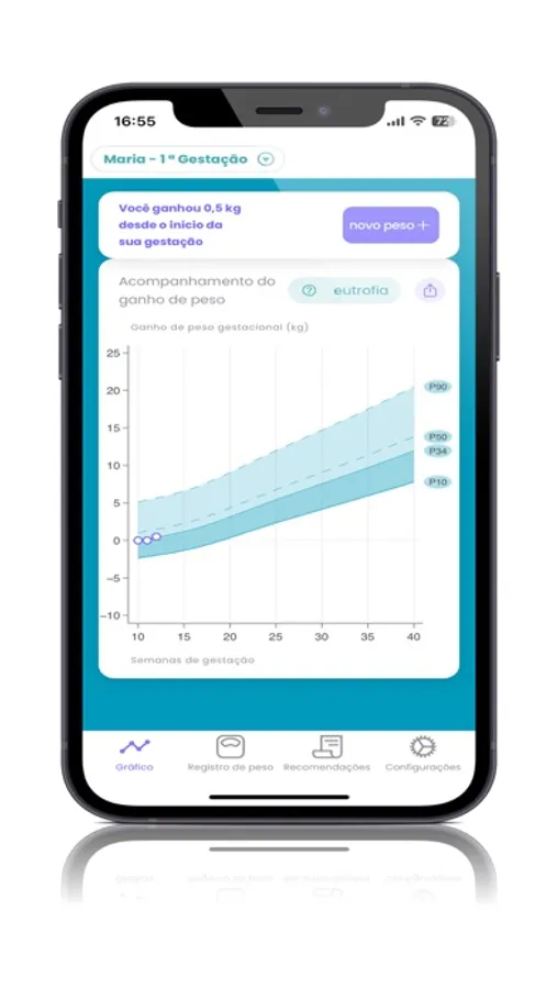Este aplicativo permite que a gestante acompanhe o ganho de peso gestacional utilizando as novas curvas e recomendações de ganho de peso para mulheres adultas brasileiras, adotadas pelo Ministério da Saúde em 2022. O aplicativo também permite o compartilhamento do gráfico e registros de peso e inclui os 10 passos para uma alimentação adequada e saudável, de acordo com o Guia Alimentar para a População Brasileira, publicado em 2014. Este aplicativo foi desenvolvido pela equipe de pesquisadores do Observatório de Epidemiologia Nutricional da Universidade Federal do Rio de Janeiro, em parceria com a Fasolti e ODD studio, com recursos de projeto financiado pelo Ministério da Saúde, Conselho Nacional de Desenvolvimento Científico e Tecnológico e Fundação Bill e Melinda Gates.