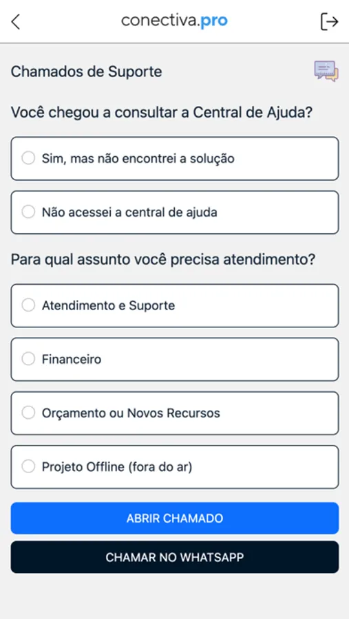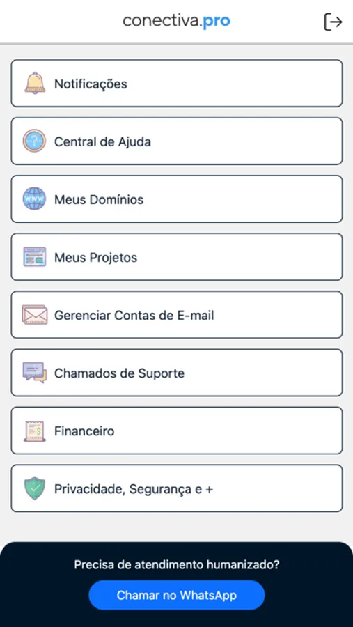 App exclusivo para clientes Conectiva Pro, com recursos de gerenciamento de e-mails, projetos, chamados técnicos e central de ajuda.