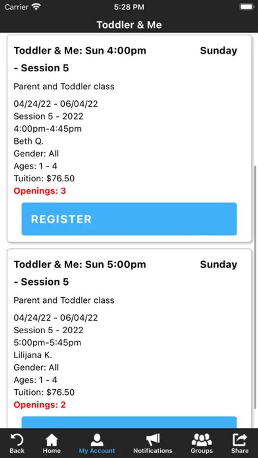 The Crossroads Elite Gymnastics Academy app allows you to manage your account with ease, register for classes, parties, and special events. You'll also receive important notifications about class changes, closings, registration openings, special announcements, and upcoming events.