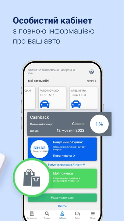 Подивитись історію авто, кількість бонусних балів на рахунку, купити автомобіль або записатися на обслуговування - все це легко і зручно зробити в нашому мобільному додатку.
