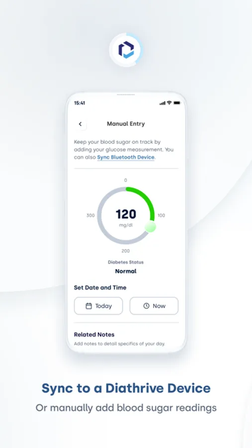 Pair your Diathrive meter with Bluetooth technology to sync your data. Add helpful information to your numbers, like carbs, exercise, insulin dose, etc.