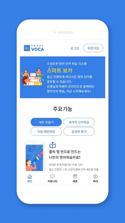 카드학습, 예문학습, 매칭학습 등으로 구분되어, 체계적으로 구성되어 있는 기능을 통해 핵심 영어 단어를 빠르고 정확하게 이해할 수 있습니다.