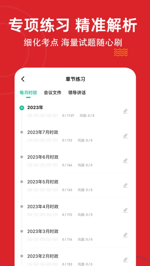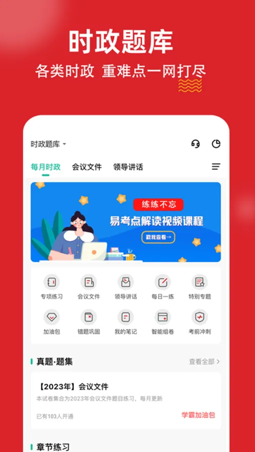 【时政题目】每月时政、会议文件、领导讲话、各省时政题目全都有,重难点一网打尽。