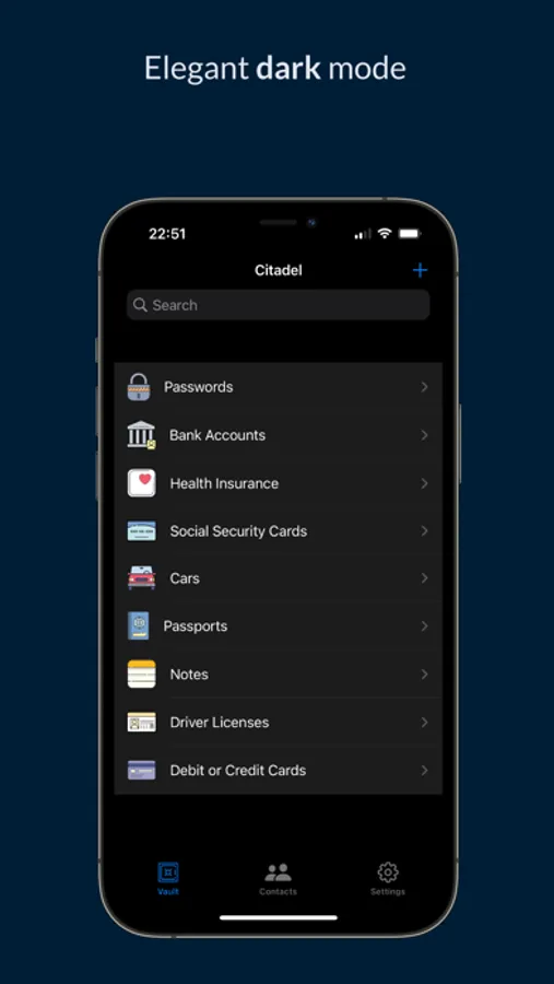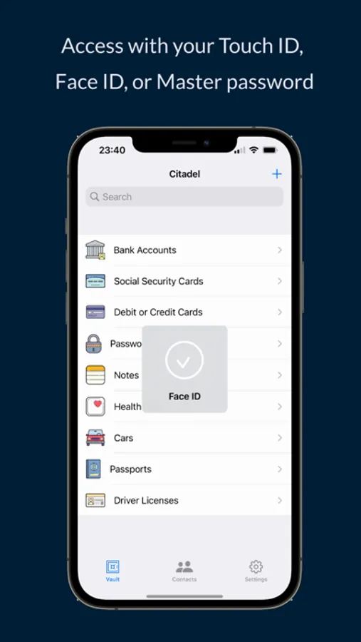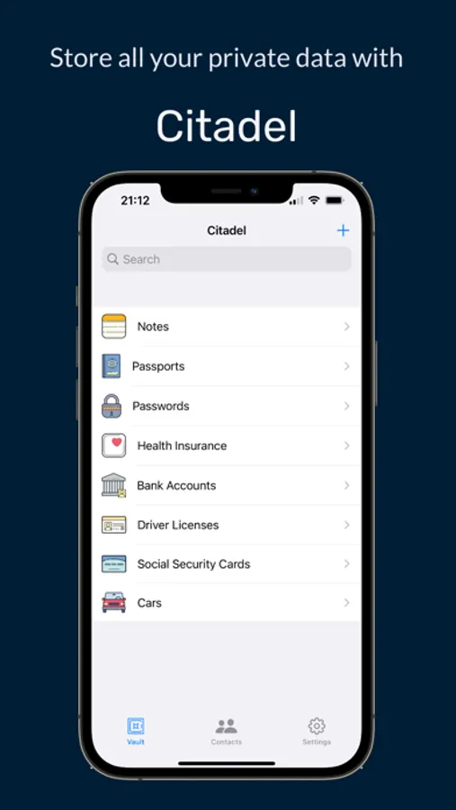 Citadel Password Manager securely stores your passwords and private documents in a secure vault. As you visit apps and sites, Citadel auto-fills your login credentials.