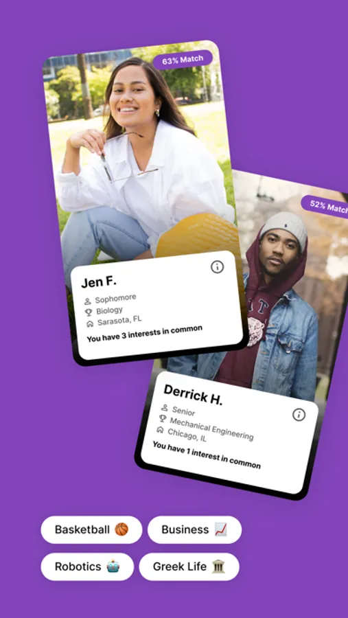 - MATCHING: Receive a list of your closest matches and see what similarities you share!