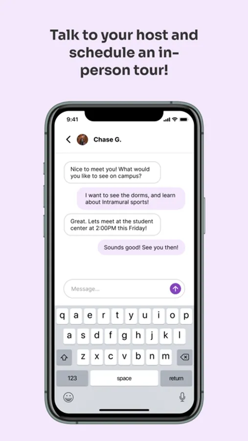 Then, you can schedule a time to meet up with your host to learn about life as a college student during a personalized tour. See the buildings where you'll spend the next four years, learn more about the clubs and organizations that matter to you, and get the questions that you really want answered from your match at your potential future home!
