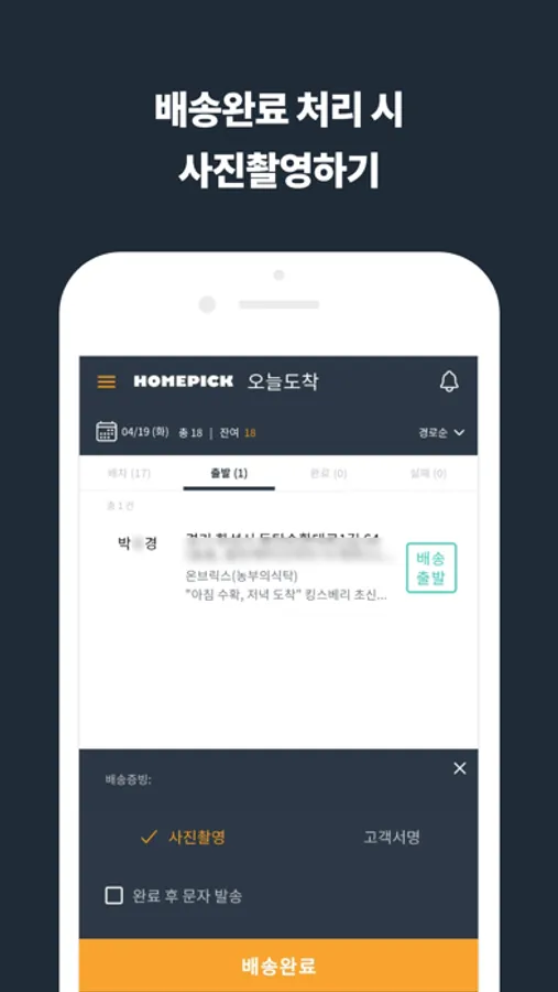 배송신청 플랫폼 홈픽의 기사 전용 앱 입니다.
