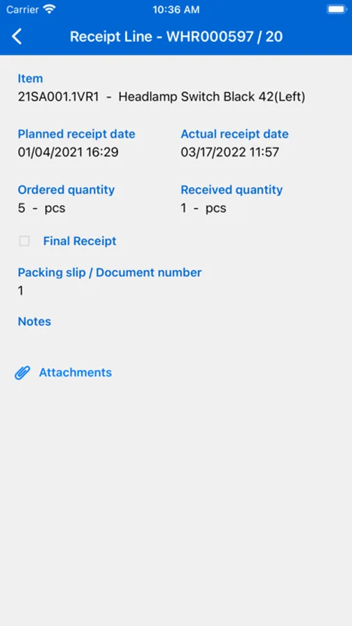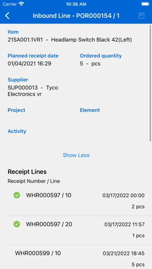 This app helps easy registration of warehouse on-site receipts in Infor LN.