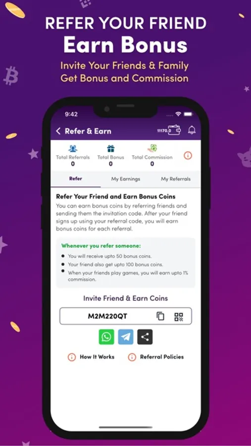 ● Play and Earn with friends.