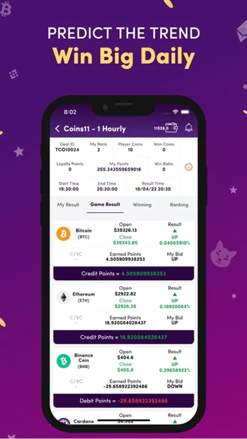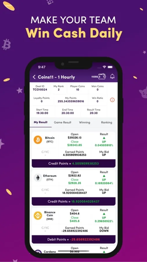 Play Coins11 with your virtual currency knowledge and skill. To play, you can create your own team from a collection of virtual currency tokens. You can form a team by paying the minimum entry fee. Your team earns points based on the price of your chosen tokens at a given time and in a given duration. It's time to put your skills to the test and win big cash!