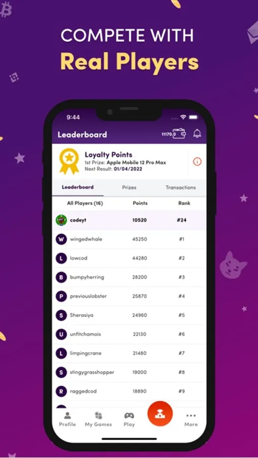 Download the Coins11 mobile app for free, play virtual currency play to earn games, and win real money every day.