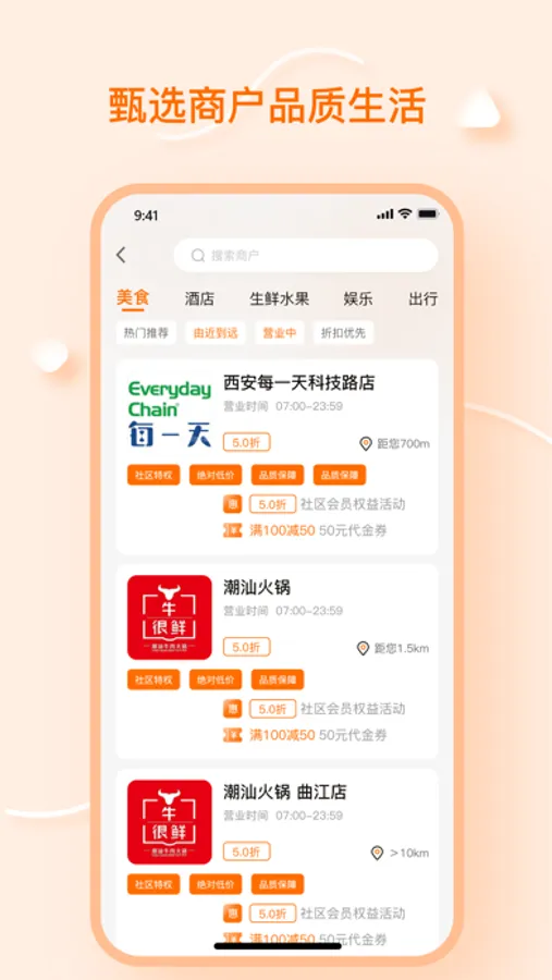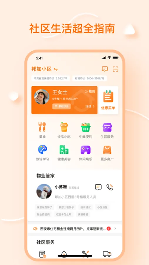 是一款整合社区周边生活服务、吃、完、住、用等第三方资源的线上O2O平台,给予社区住户提供安全、有保障、机具性价比的服务体验和权益优惠。
