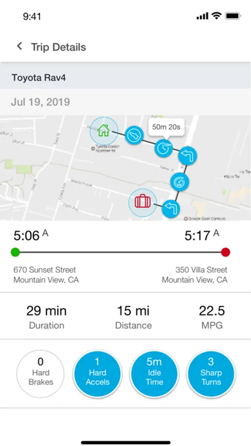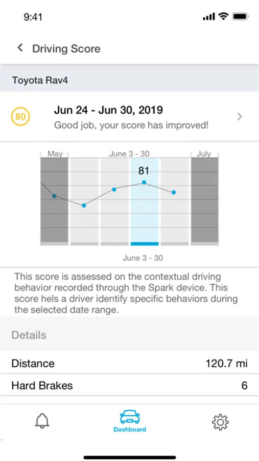 • Driving Score: Receive a driving score based on your driving habits and get helpful tips on how to become a safer and smarter driver.