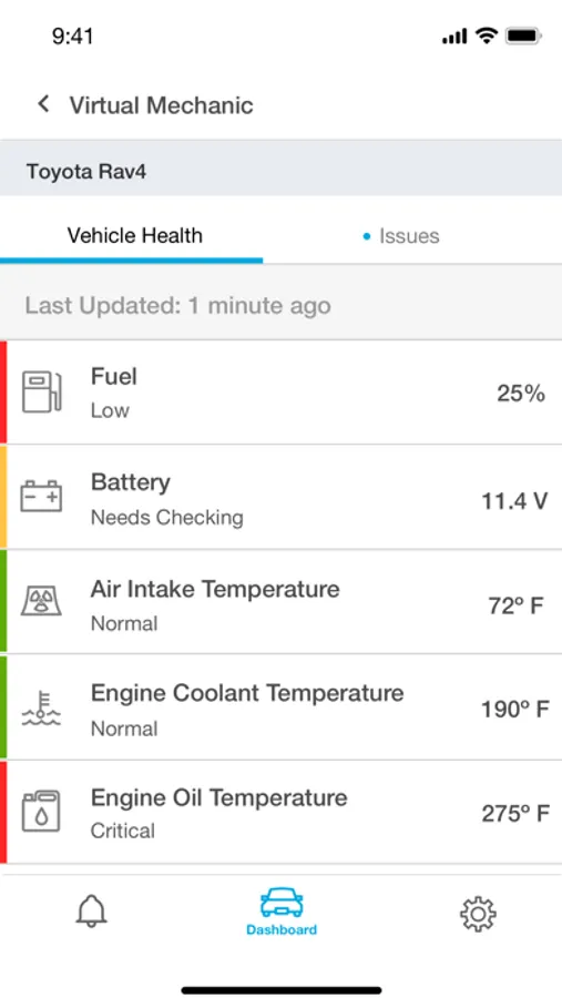 • Virtual Mechanic: Keep car troubles at bay. The virtual mechanic monitors your vehicle health and lets you know what to do if there is a problem.