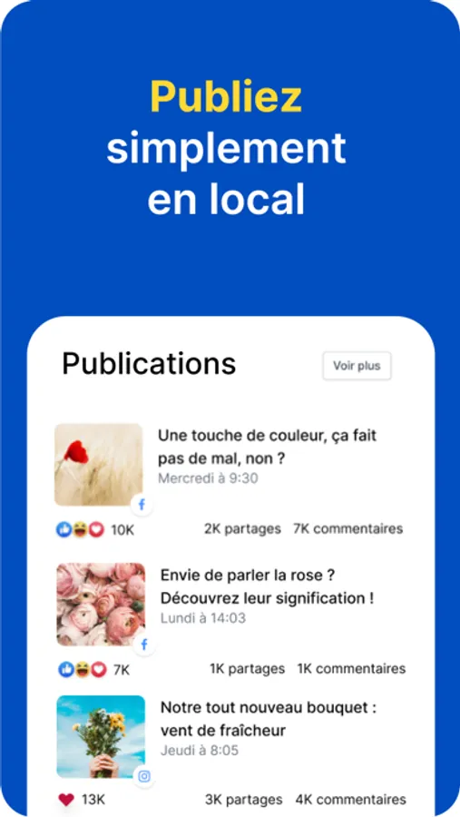 - Créez, planifiez et publiez sur Facebook et Instagram,