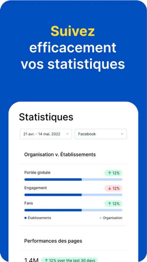 - Mesurez et analysez les performances de vos réseaux sociaux et de vos publications,