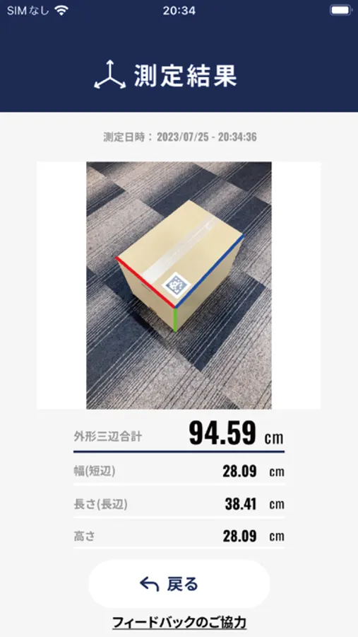 測定対象を斜め上から撮影するだけで簡単・即座に三辺を測定できます。