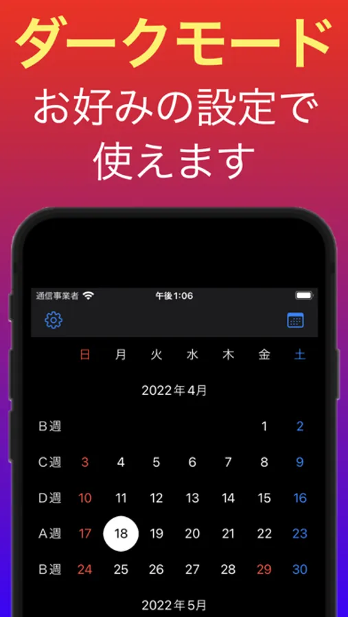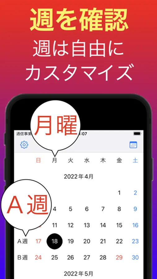 設定した周期に応じて、カレンダーの左側に「A週」というように表示されます。