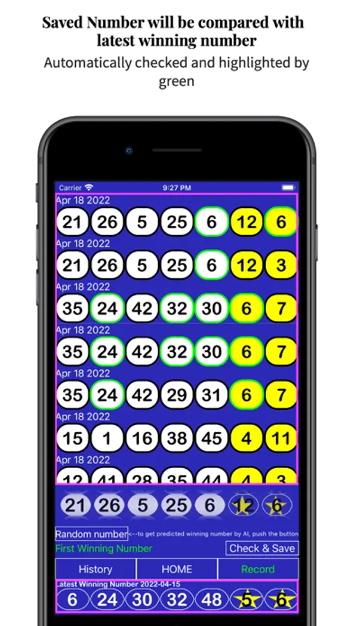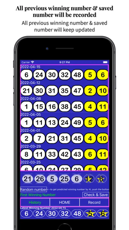 3 . App will show you previous winning number and saved your preferred number in the app.