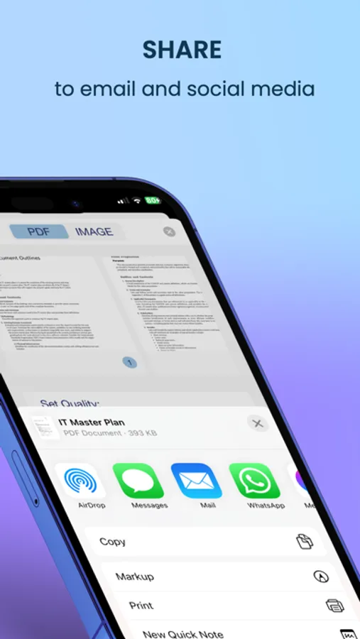 - Share Documents in PDF or JPG: Via Email, Social Media & IM