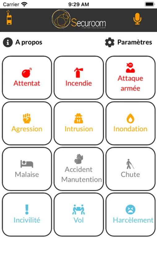 Securoom vous permet de définir vos propres risques et procédures de sauvegarde (diffusion d’alarmes, envoi de SMS, diffusion de consignes vocales, contact aux services de secours…). En cas d’exécution du risque, Securoom s’occupera de suivre vos instructions.