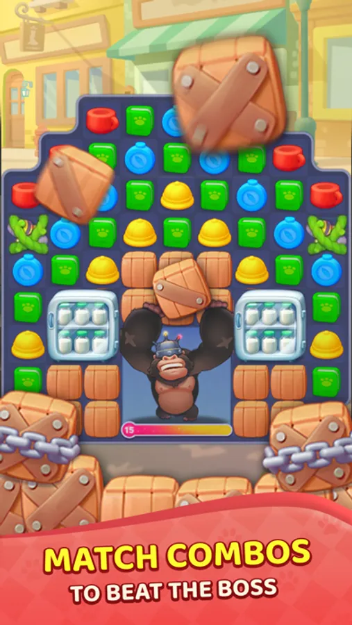Bored of ordinary match3 games? Let’s forget the simple matching, challenge your logical thinking by beating belligerent King Kong and other obstacles with bold move.