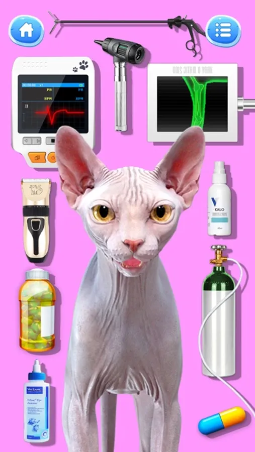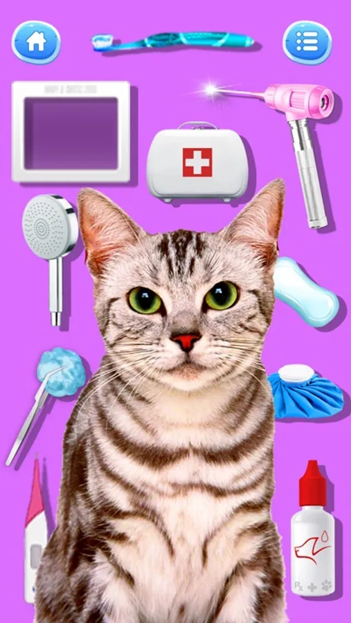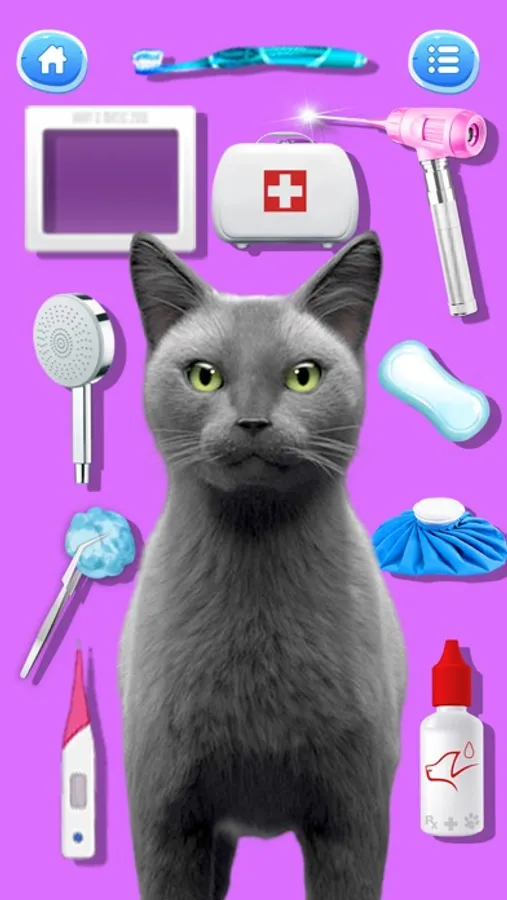 Have you ever thought of becoming a veterinarian? Want to help the poor kitten when you see them? Come and enter our super-real cat treatment simulator! Here, you can experience all kinds of magical therapeutic equipment. There are x-ray machines to check the cat's bones, and there are magnifying glasses to check the cat's skin problems. You can also take care of your cats, bathe them, and remove branches from their bodies with tweezers. After the treatment is over, give the cat some cute toys as encouragement. Finally, choose a background and take a beautiful photo of the cat.