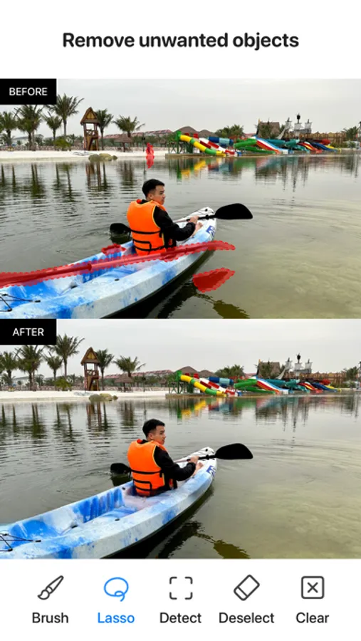 Got an annoying object cluttering your photo's background? Our powerful object eraser makes it a breeze to erase objects and create a clean, distraction-free image.