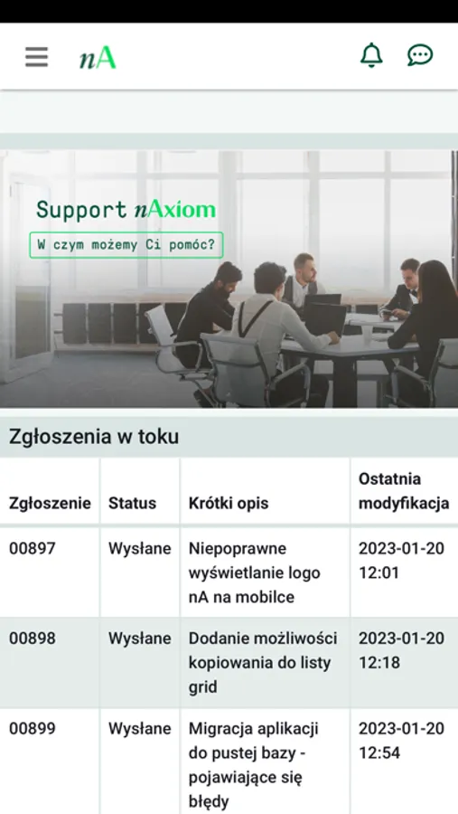 Potrzebujesz pomocy w pracy z platformą low-code nAxiom? Uzyskaj potrzebne wsparcie w jednym miejscu. Aplikacja Support nAxiom zapewnia spersonalizowany dostęp do platformy wsparcia technicznego poprzez, którą można zgłaszać zdarzenia. Rodzaje zdarzeń obsługiwane za pośrednictwem Support nAxiom: 1. Błędy napotkane podczas pracy z platformą nAxiom. 2. Wnioski o nowe funkcjonalności platformy nAxiom. 3. Prośby o udzielenie przez personel nAxiom Sp z o.o. pomocy merytorycznej w prowadzonym wdrożeniu. Zgłoś problem do rozwiązania przez personel nAxiom lub uzyskaj wskazówki krok po kroku, aby rozwiązać go samodzielnie. Serwis nAxiom pomoże Ci znaleźć optymalne rozwiązanie dla Twojego zgłoszenia. Zgłoszenia są rozpatrywane zgodnie z typem przez zespoły testerów, konsultantów lub analityków. Klienci i Partnerzy mają wgląd w każde swoje zgłoszenie oraz możliwość podejrzenia, na jakim etapie workflow się znajdują. Uwaga: Aplikacja Support nAxiom jest dostępna w wybranych krajach i regionach. Dostępna tylko dla zarejestrowanych użytkowników platformy nAxiom. Hasła dostępu przekazywane są przez opiekunów handlowych.