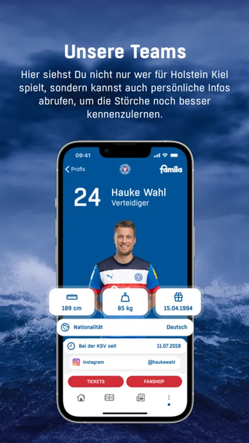 Tickets und Fanartikel sind mit der neuen Holstein Kiel-App immer nur einen Klick entfernt. Zudem machst Du Dein Handy mit unserer App zu Deinem digitalen Stadionmagazin: Egal ob Du im Stadion bist oder nicht, die aktuelle Ausgabe steht Dir immer zum Lesen zur Verfügung. Mit HolsteinTV lernst du die Störche auch abseits des Platzes kennen, verpasst aber auch keine Presskonferenz oder Videohighlights der Holstein-Spiele. In der Teams-Übersicht siehst Du nicht nur, wer bei den Profis im Kader steht, sondern kannst auch Informationen zu den Spielern abrufen. Im Social Media-Feed wirst Du direkt in der App mit spannenden Stories und Insights versorgt – immer am Puls der Zeit. Die Fußballschule ist der Bereich für unsere kleinsten Fans und heranwachsende Fußballer:innen. Die wichtigsten Fakten und Daten der Vereinsgeschichte sind unter dem Punkt Historie zusammenfasst.