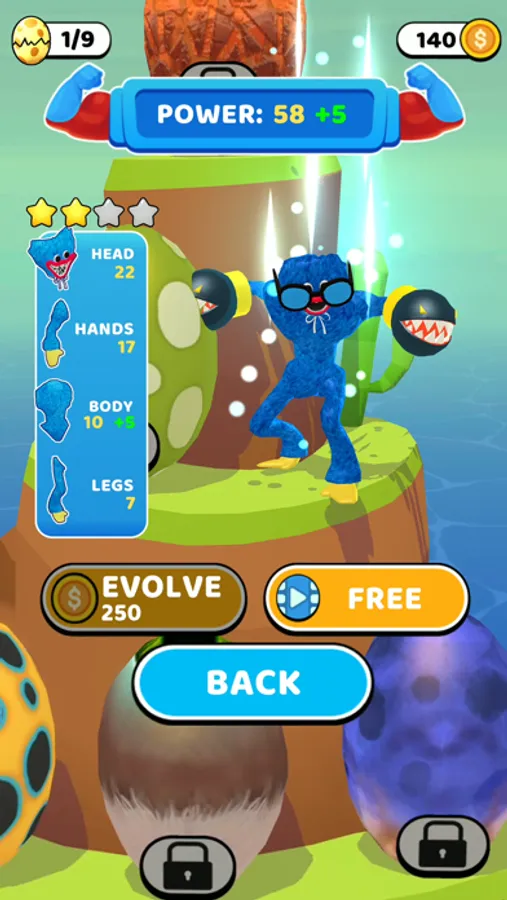 The DNA evolution will help you get your mutant monster! You can make it stronger by giving more power to the legs and hands!