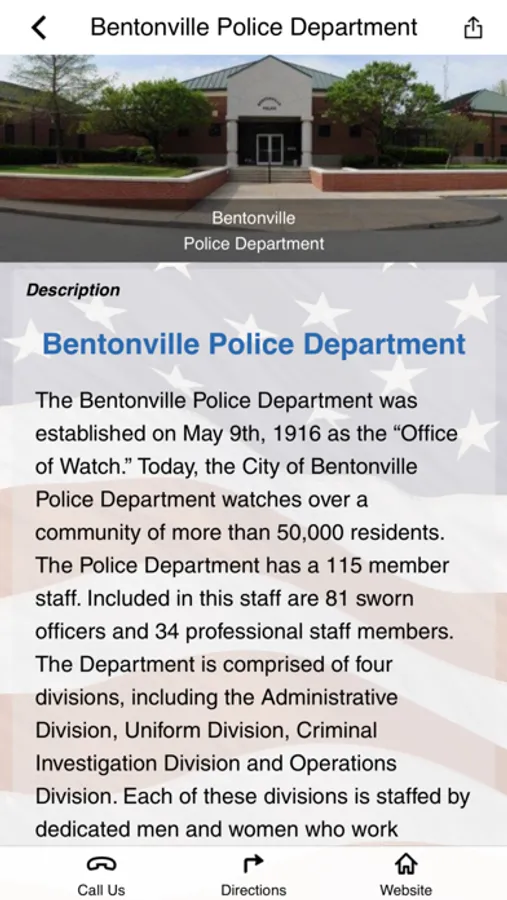 On behalf of the men and women of the Bentonville Police Department, welcome to our app. This app is for the employees and family members of the Bentonville Police Department as well as the community it serves. It contains information about our department as well as safety and crime prevention tips. Bentonville Police Department employees will have access to a full range of wellness tools.