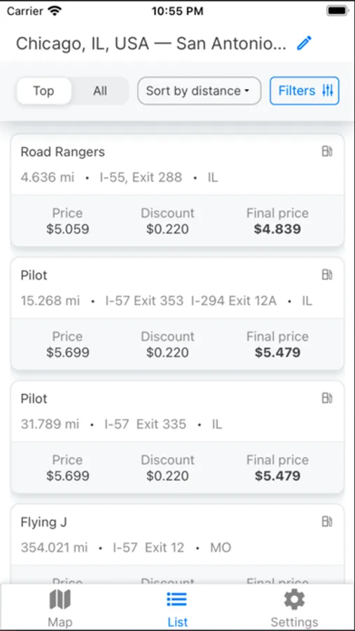It makes it easy for drivers to enter their route, and view all of the prices. They can also filter and order the results based on their chosen criteria.
