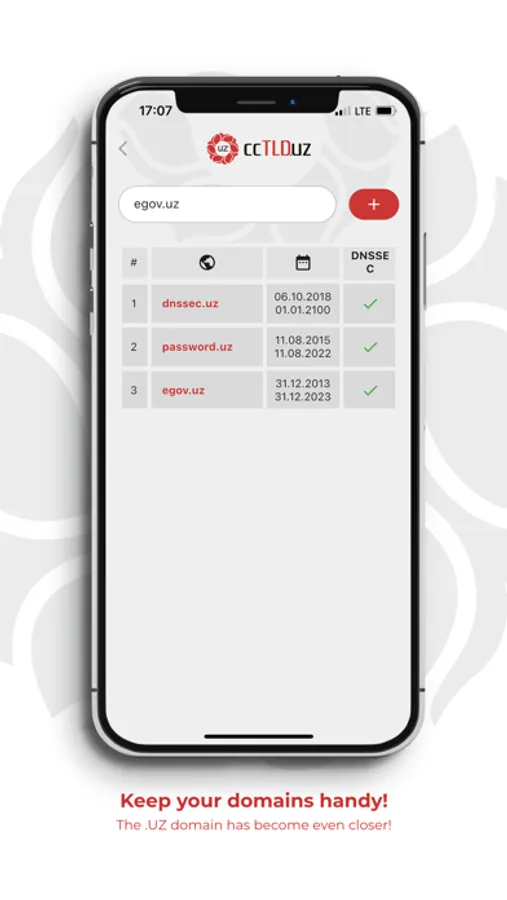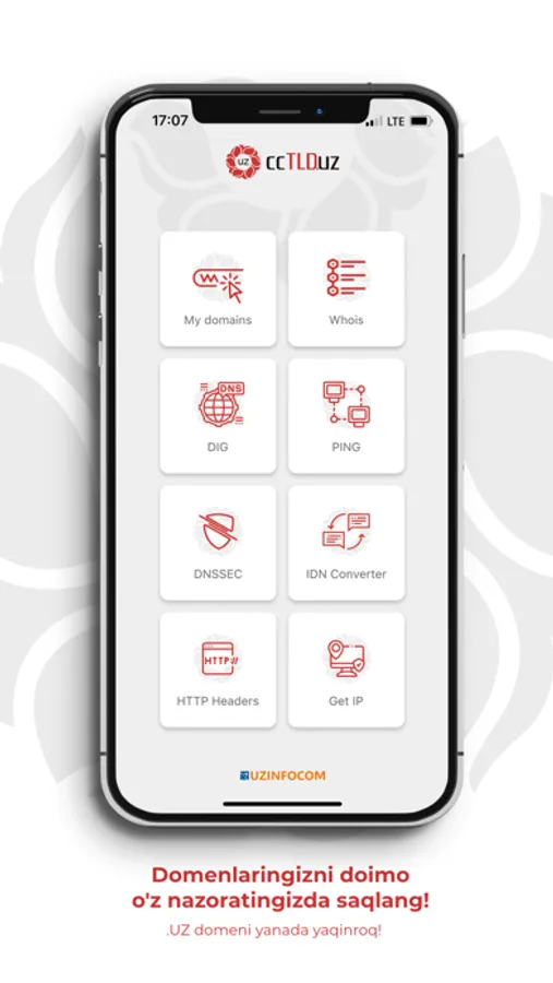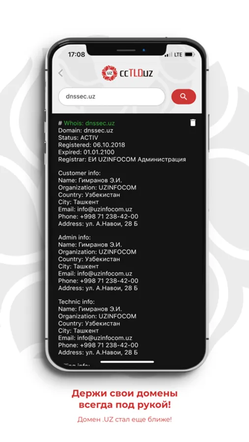 Используй мобильное приложение ccTLD.uz для контроля срока своего доменного имени, а также используй другие полезные инструменты!