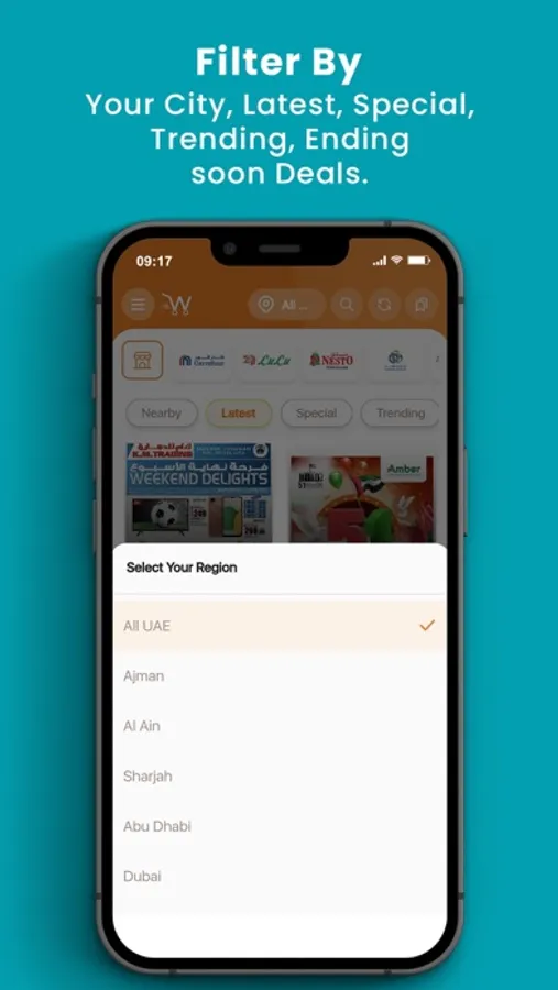 - Browse different offer categories such as: Nearby, Latest, Special, Trending, Ending Soon.