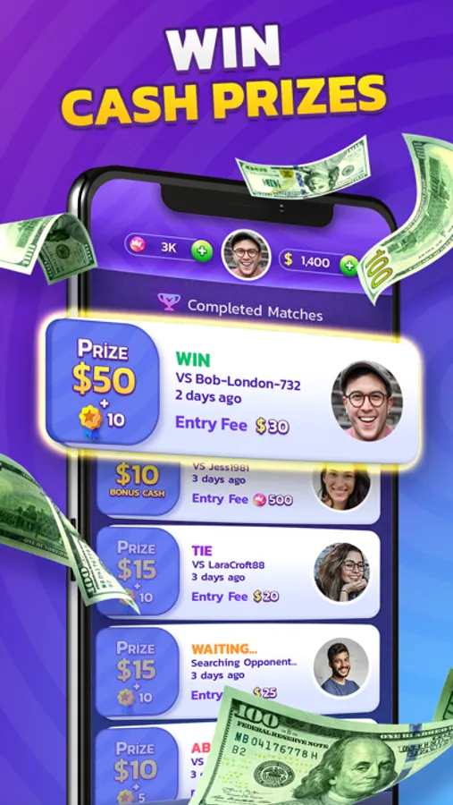 All deposits and withdrawals are secure through PayPal, Apple Pay, Visa and Mastercard - pay an entry fee without worry and safely withdraw CASH to your PayPal or bank account.