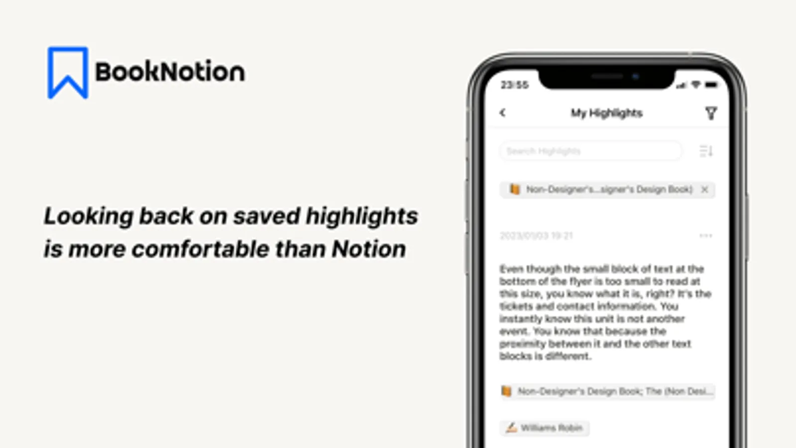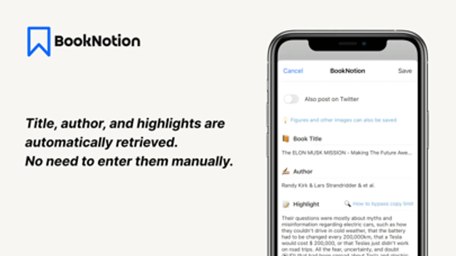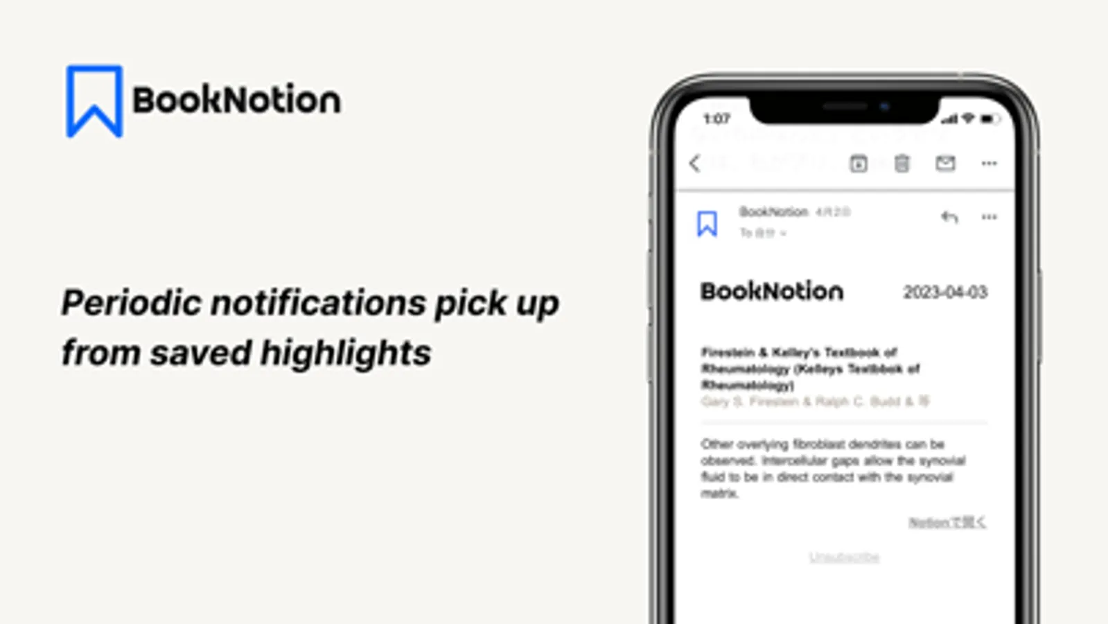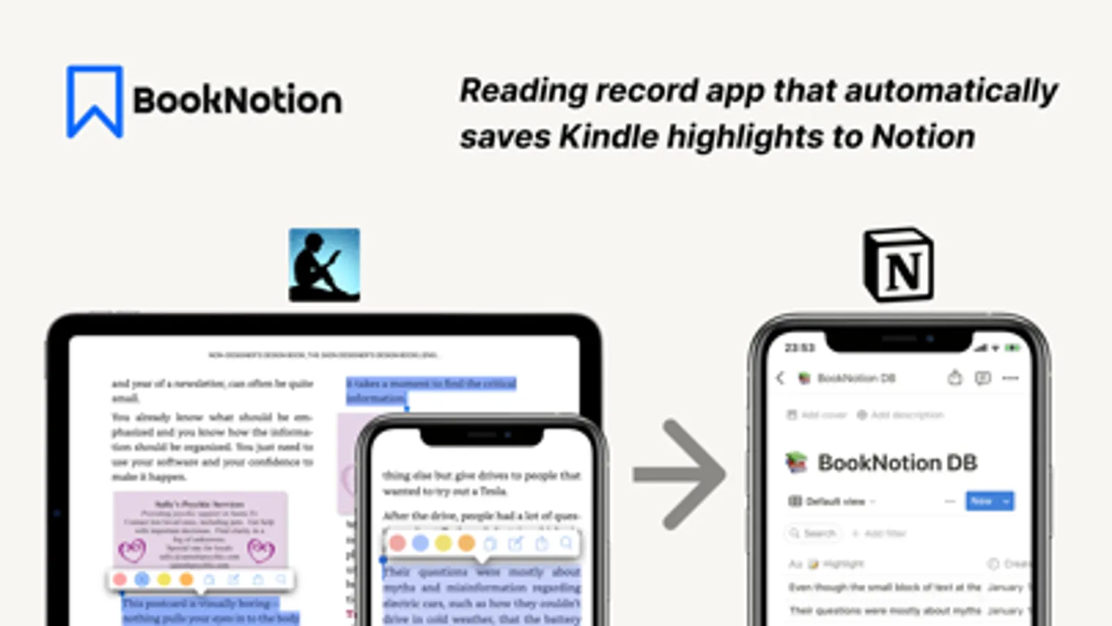BookNotion is a reading record application that automatically saves your Kindle highlights in Notion with a single touch, along with the book title, author name, and comments.