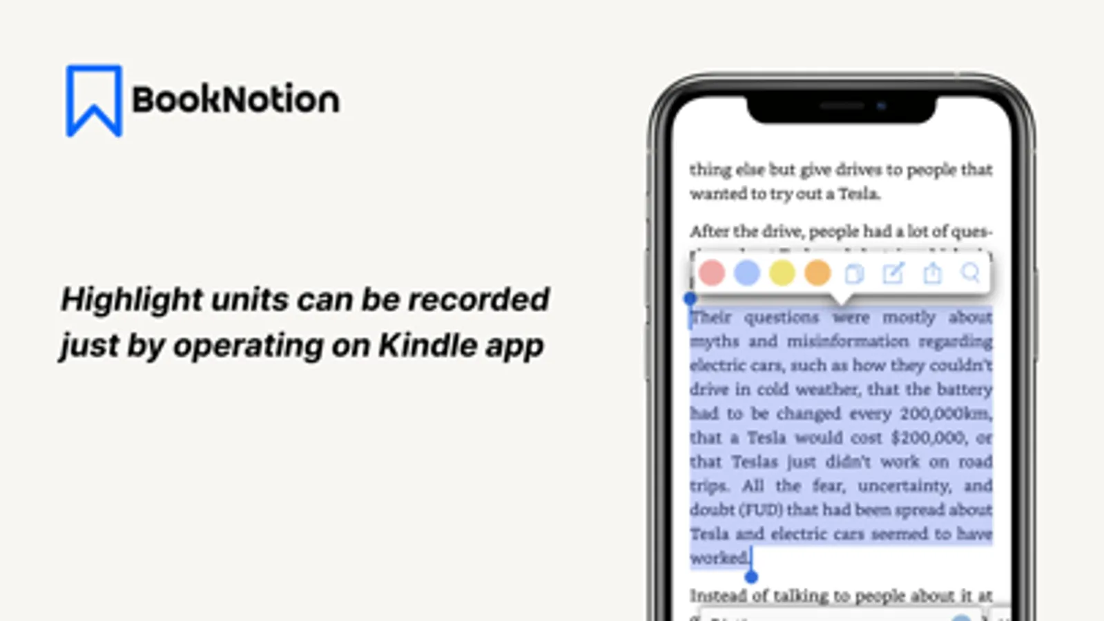 When you are reading on the Kindle app, if there are phrases you like or knowledge you want to remember, you can save them with one touch without opening Notion.