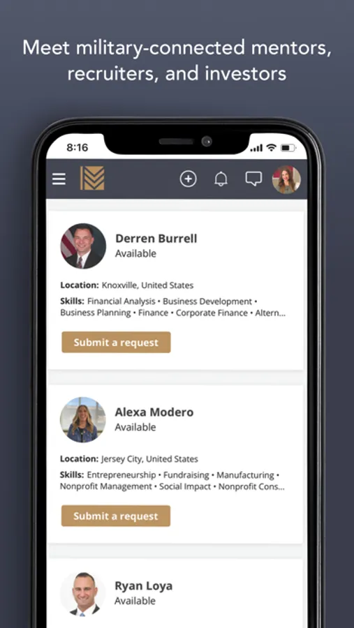 Meritorious is an all-in-one SaaS platform making it easier for military-connected professionals, business owners, and veteran friendly organizations to find each other and collaborate while engaging transitioning veterans and military spouses. Meritorious provides active-duty service members, veterans, military spouses, and veteran advocates access to a member portal, networking events, mentors and recruiters, micro-communities, and mobile app with geolocation.