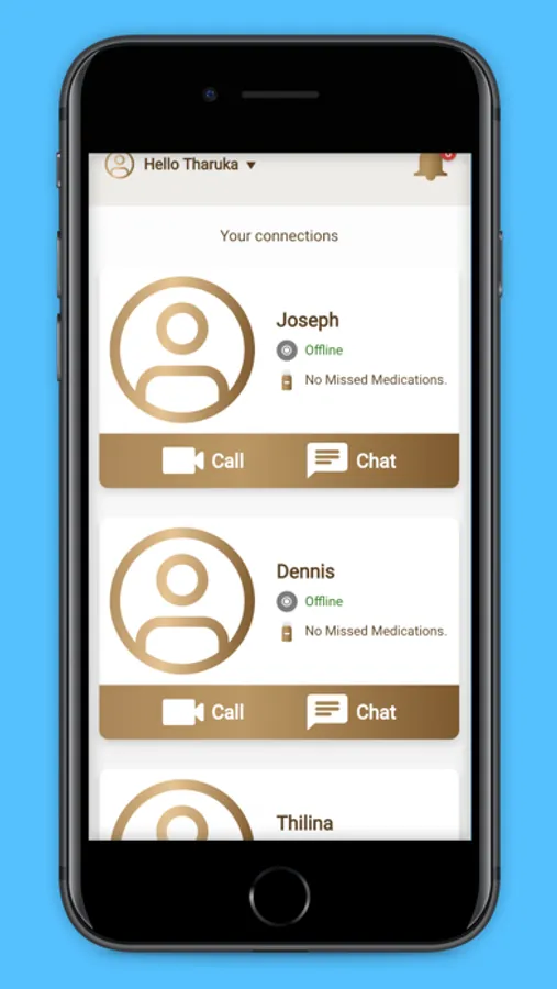 The Family App is used to share photos and videos, make video calls, and chat directly to a loved one’s senior tablet. The app shares health vital readings information collected by the senior tablet. In the instance of a fall being detected, family members will also be alerted through the Family Connect app.