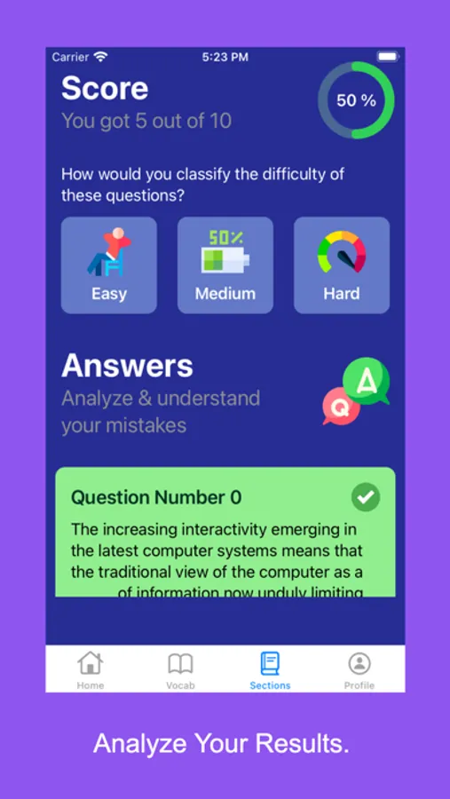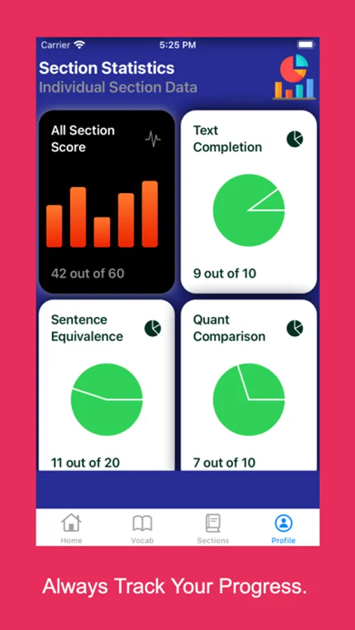 If you're looking to ace the GRE, this app is for you! Our comprehensive GRE preparation app offers realistic practice questions, results, and algorithmically generated personalized words to improve your vocabulary. With our GRE app by your side, you'll be ready to tackle the test and get into the graduate school of your dreams!