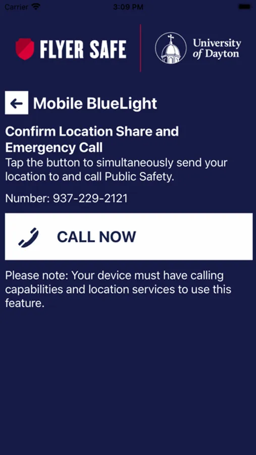 - Mobile Bluelight: Send your location to University of Dayton security in real-time in case of a crisis