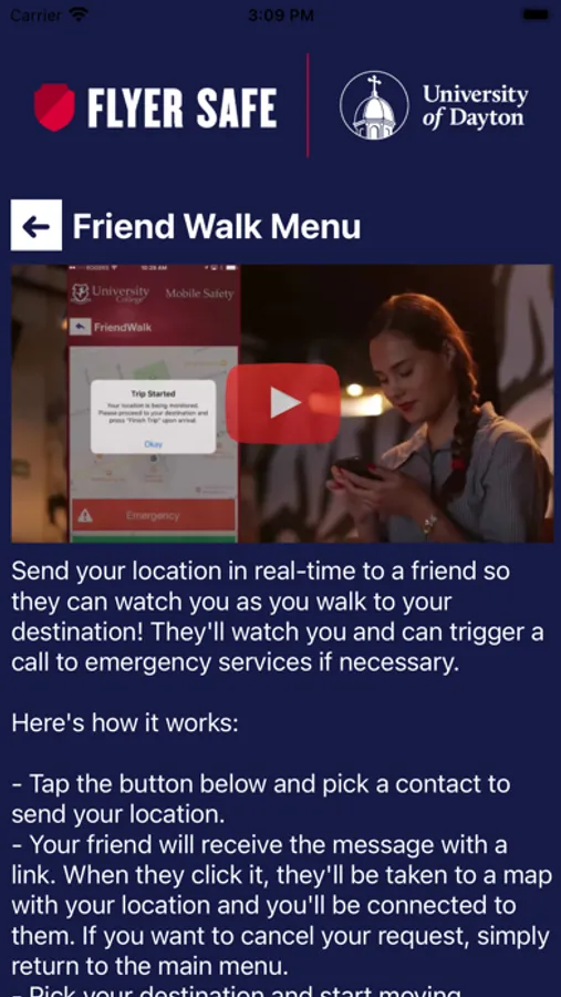 - Safety Notifications: Receive instant notifications and instructions from University of Dayton safety when on-campus emergencies occur.