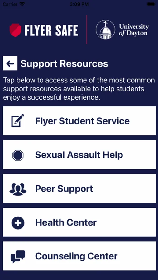 - Support Resources: Access support resources in one convenient app to enjoy a successful experience at the University of Dayton.