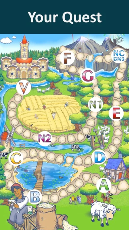 · Move to the next level or list of words until you reach the castle