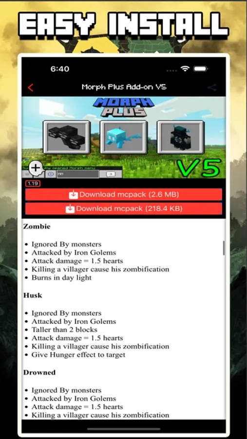 Mods for MCPE offer: